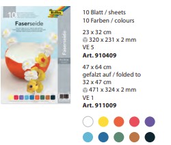 Lahek, polprosojen papir iz lubja murvinega drevesa. Vsebuje 10 listov v različnih barvah. Odličen za svetlobne dekoracije, lampijone, papirnate cvetove in ustvarjalne projekte. Gramatura 25 g/m².