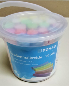 V plastičnem lončku je 20 debelih kred za slikanje po asfaltu.